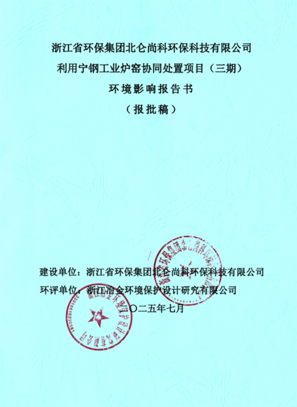 7月29日,尚科环保成功取得《宁波市生态环境局关于浙江省环保集团北仑尚科环保科技有限公司利用钢铁工业炉窑协同处置项目(三期)环境影响报告书的审查意见》(甬环建〔2025〕34号),获准建设资源化利用焚烧后废金属10000吨/年。